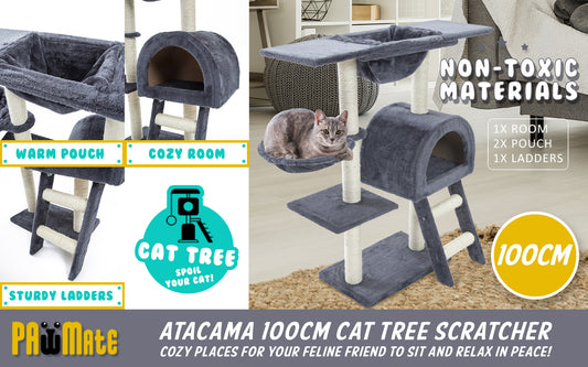 Paw Mate 100cm Grey Cat Tree Atacama Multi Level Scratcher