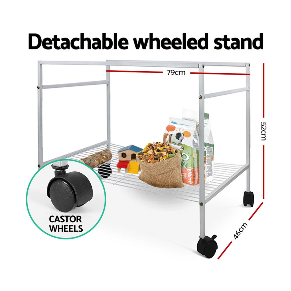 Combo with the wheeled stand, the Pet Rabbit Cage is convenient enough to wheel out on a sunny day and sturdy and strong for all intents and purposes.